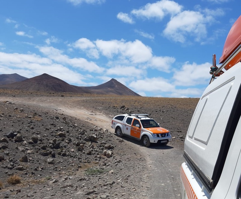 Los efectivos de Protección Civil de Yaiza le inmovilizaron el cuello mediante un collarín y el miembro inferior con una férula semirrígida