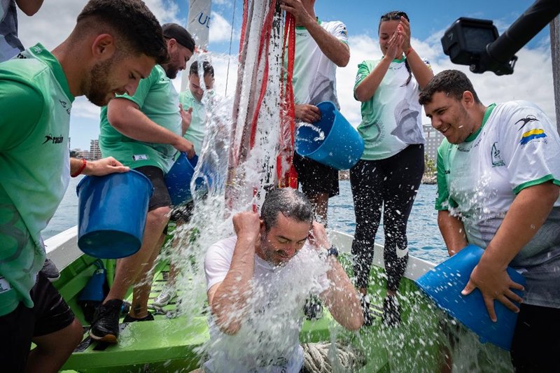 La tripulación del bote de vela latina Minerva celebra su aniversario con el bautizo del presidente del Gobierno canario