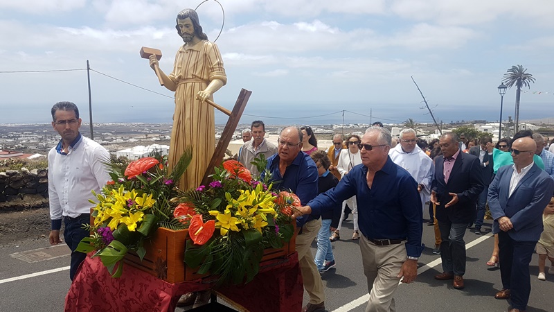 La imagen del santo patrón de los trabajadores estuvo acompañada en su procesión por la Banda Municipal de Tías  Acuarti y la Agrupación Folclórica Gaida