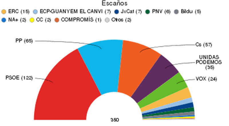 El partido de Pedro Sánchez logra una clara victoria y suma 124 escaños con el 63% escrutado