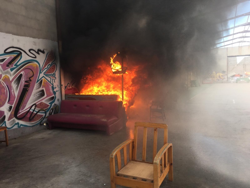 Los Bomberos apagaron el fuego que se había producido al arder unos muebles, una nevera y algunas chapas