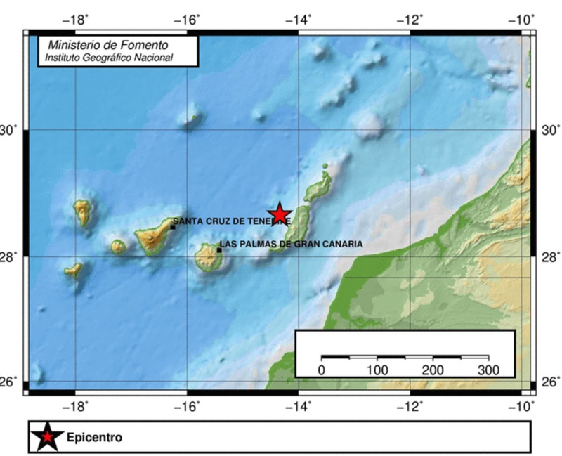 El epicentro del movimiento sísmico de 2.8 se encuentra a 15 kilómetros de profundidad frente a la costa noroeste de Fuerteventura