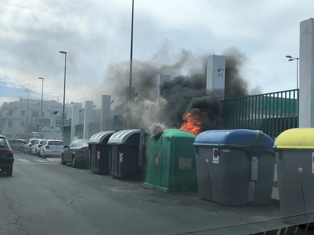Arde un contenedor de vidrio en Valterra inundado la vía de humo