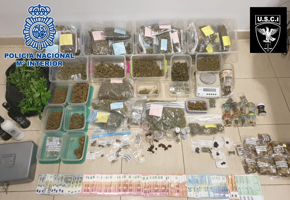 En el registro llevado a cabo por los agentes han sido incautados 3.130 gramos y 18 plantas de marihuana, 45 gramos de hachís y 2.155 euros
