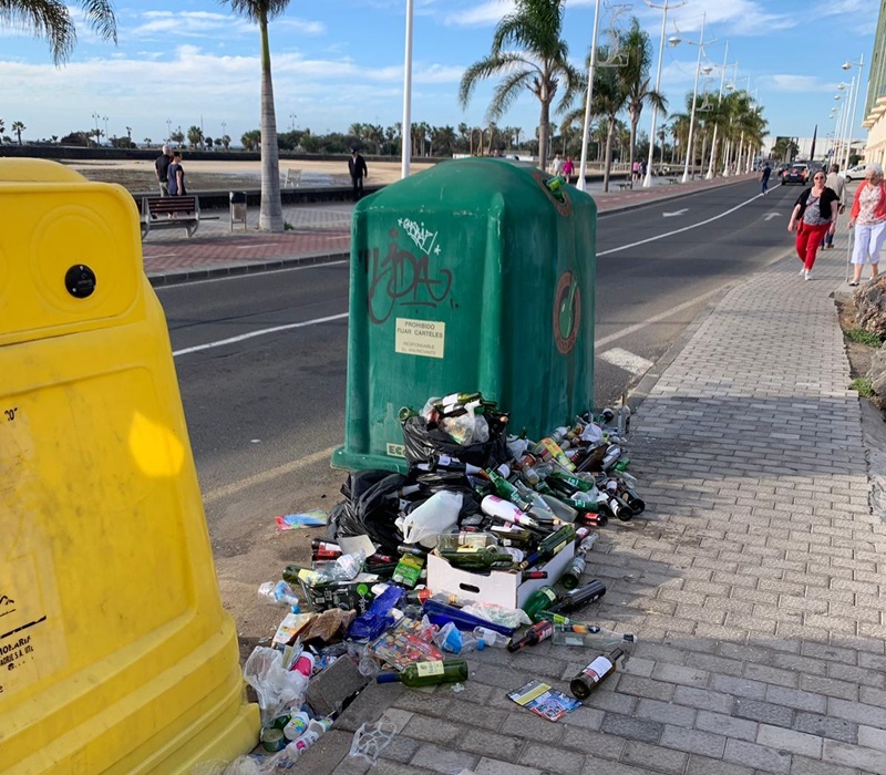 Los contenedores, desbordados desde hace varios días, muestran una imagen lamentable de una zona muy transitada de Arrecife