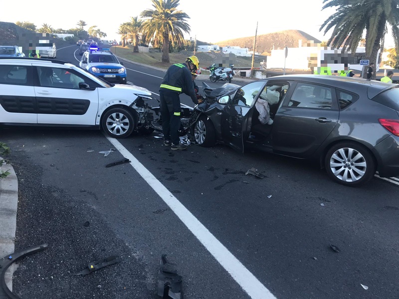 Tres heridos, uno grave, en una colisión con vuelco en Tiagua