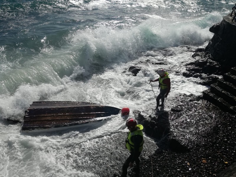 Se encontraba varada debajo de las escalinatas del paseo marítimo chocando contra las rocas