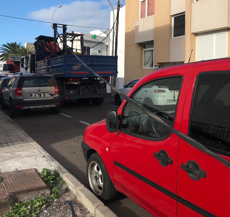 Los Bomberos balizaron la zona para evitar el riesgo para los viandantes de esta calle de Arrecife