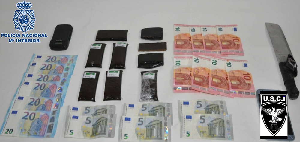 En el registro del domicilio han sido intervenidos 416 gramos de marihuana, 230 euros en efectivo, una báscula de precisión, un cuchillo y un teléfono móvil