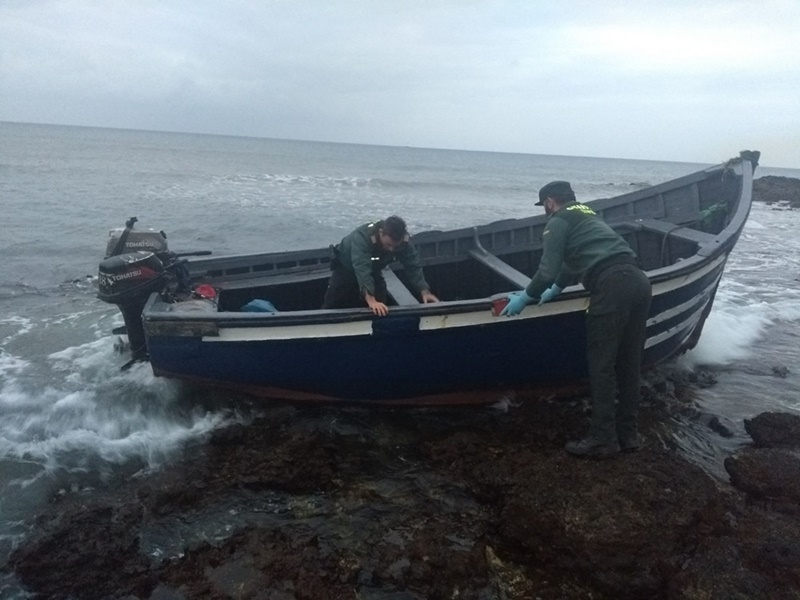 Fue interceptada con tres inmigrantes a bordo en Puerto Naos. La Guardia Civil sigue la búsqueda de más ocupantes