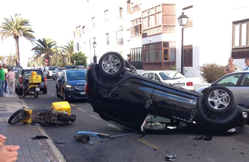 Tres heridos, uno grave, en una colisión con vuelco en Tiagua