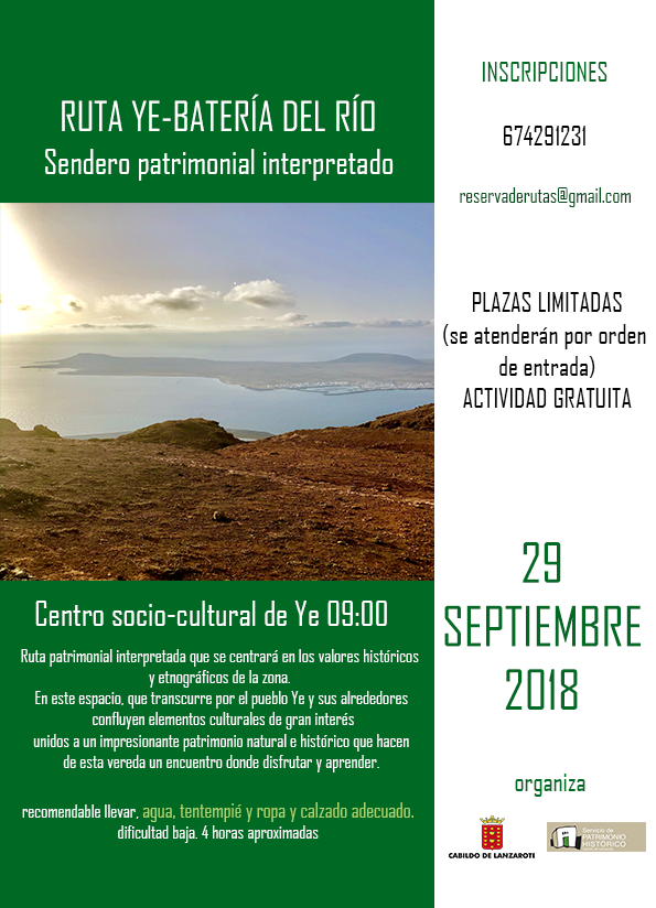 Actividad gratuita, previa inscripción en el teléfono 674 291 231 y de la dirección de correo electrónico Esta dirección de correo electrónico está siendo protegida contra los robots de spam. Necesita tener JavaScript habilitado para poder verlo.