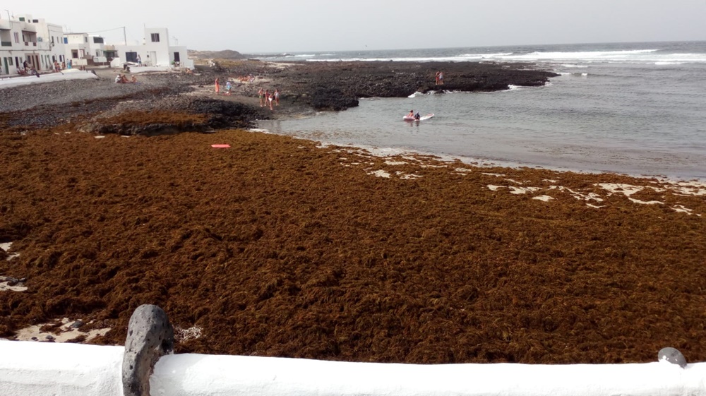 Los operarios dell Ayuntamiento de Teguise están trajando desde primera hora de la mañana para retirarla lo antes posible