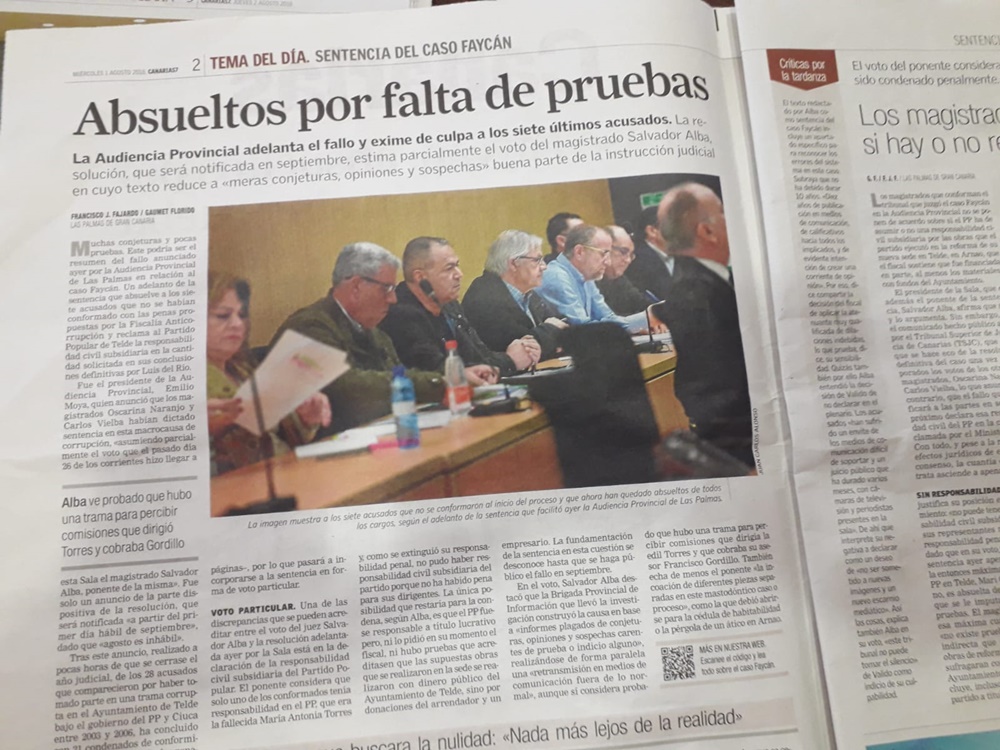 La sentencia obliga a Sosa a devolver las retribuciones públicas percibidas indebidamente y Coalición Canaria exige que se depuren responsabilidades políticas