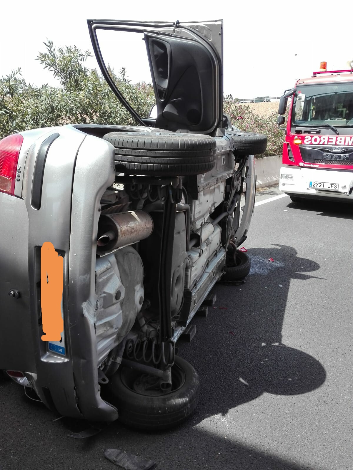 Resultó accidentada una mujer y el coche queda con las ruedas en el aire sobre un costado