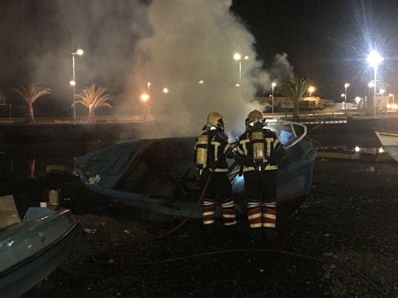 El fuego se produjo en la madrugada de este domingo en la Avenida César Manrique de la capital