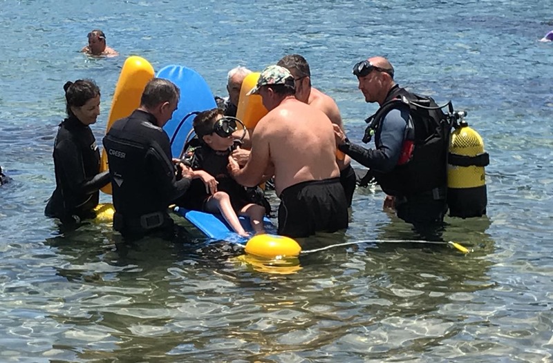 El pequeño Diego, con discapacidad, ha estado acompañado por voluntarios del Club de Actividades Subacuáticas de Lanzarote