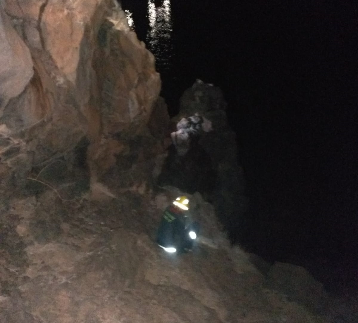 Los bomberos utilizaron los equipos de escalada para poder subirlo a tierra