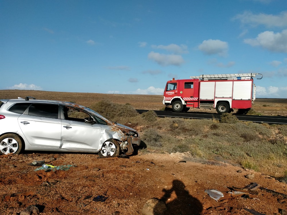 Tres heridos, uno grave, en una colisión con vuelco en Tiagua