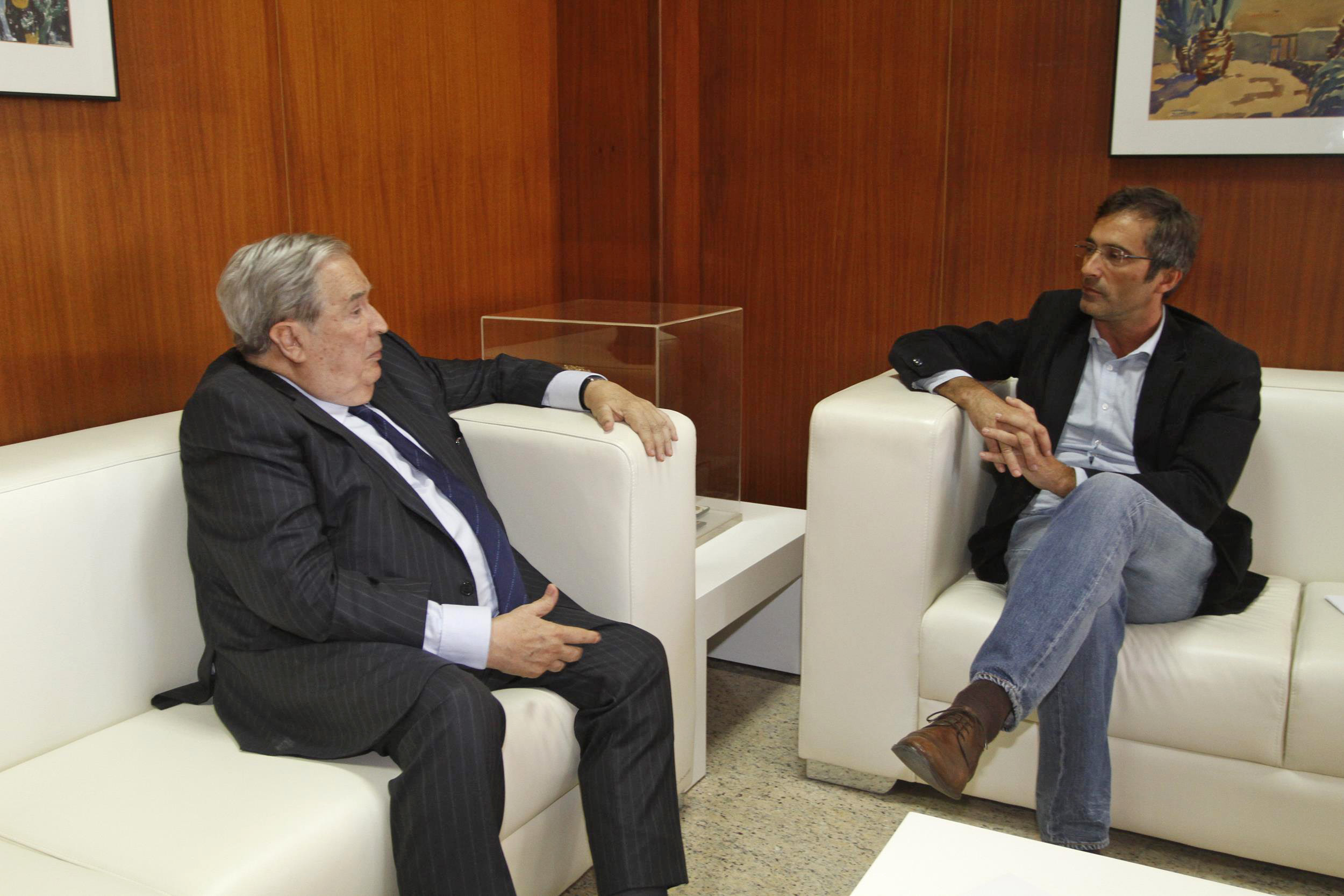 El presidente del Cabildo de Lanzarote, Pedro San Ginés, recibe a Jerónimo Saavedra y reconoce la labor y buenas relaciones mantenidas históricamente con la institución