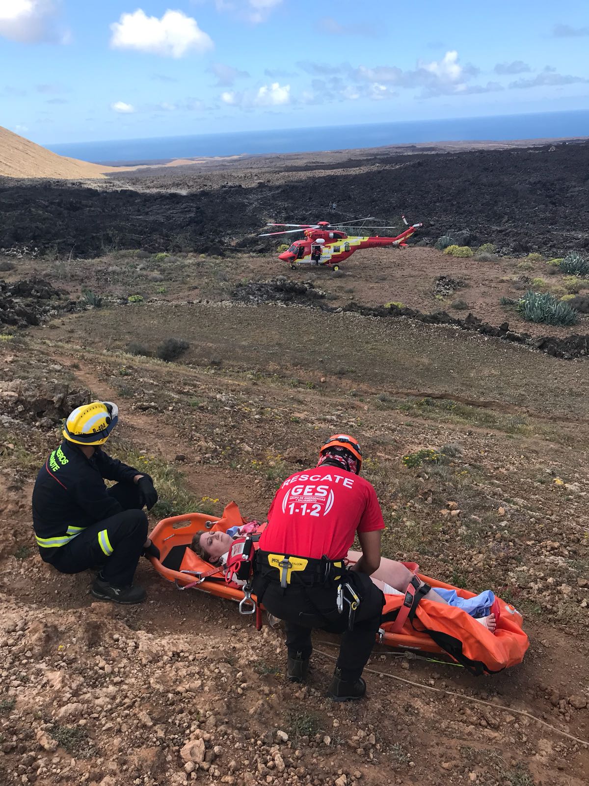 Una senderista ha tenido que ser rescatada, en la tarde de hoy, por el helicóptero del CECOES, de entre dos calderas de Caldera Blanca, en Tinajo