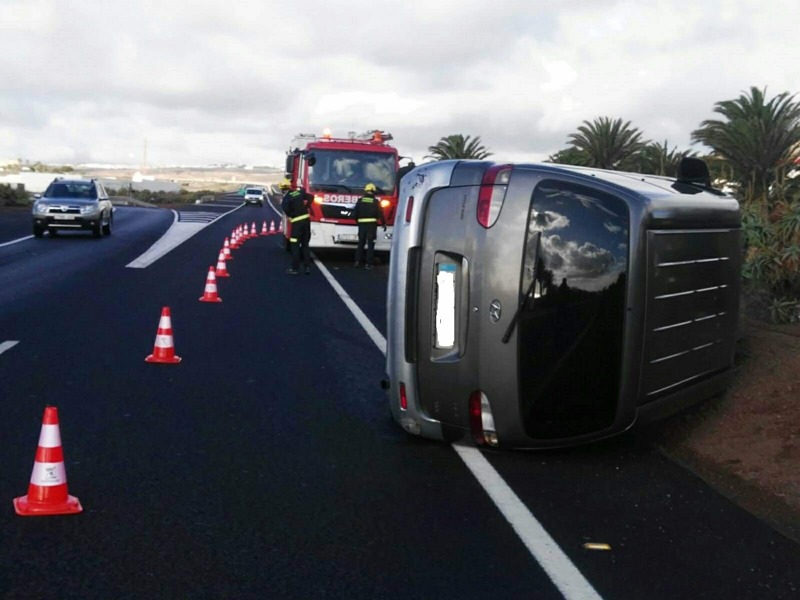 Tres heridos, uno grave, en una colisión con vuelco en Tiagua