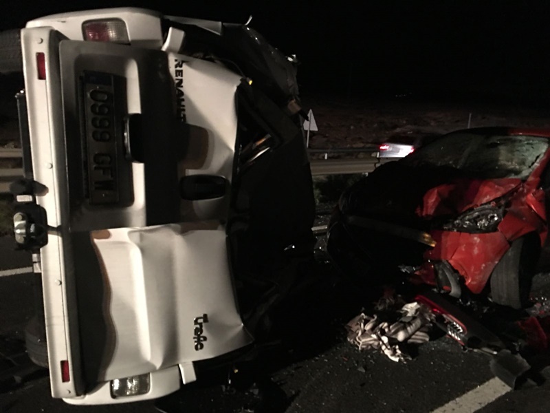 Tres heridos, uno grave, en una colisión con vuelco en Tiagua