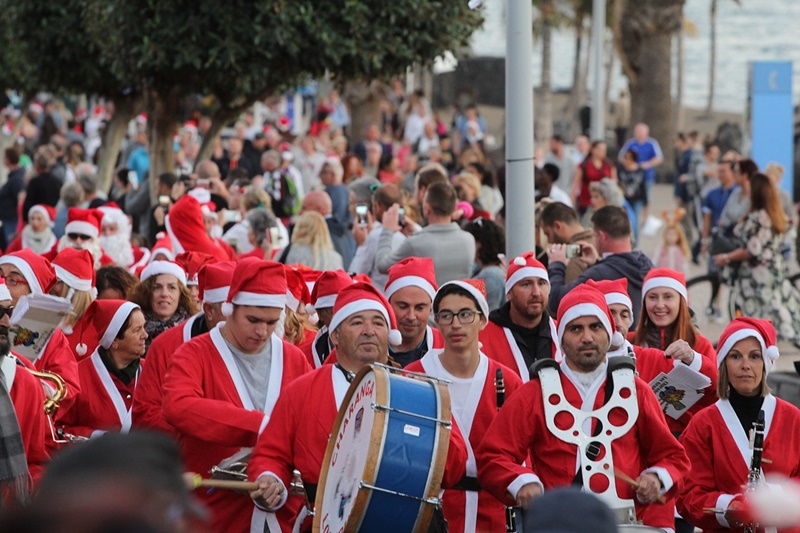 Un animado pasacalles de 'Hombres del Polo Norte' desfila por la Avenida de las Playas hasta La Tiñosa
