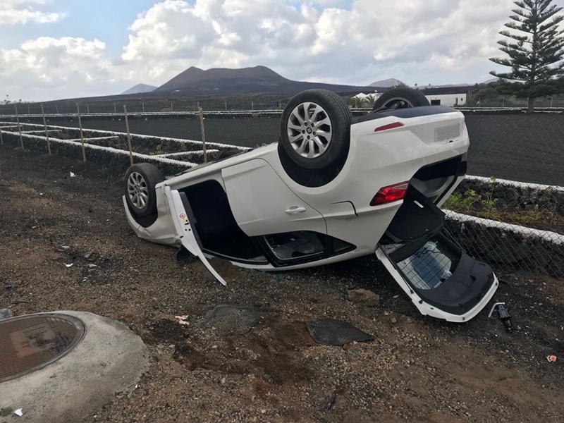 Tres heridos, uno grave, en una colisión con vuelco en Tiagua