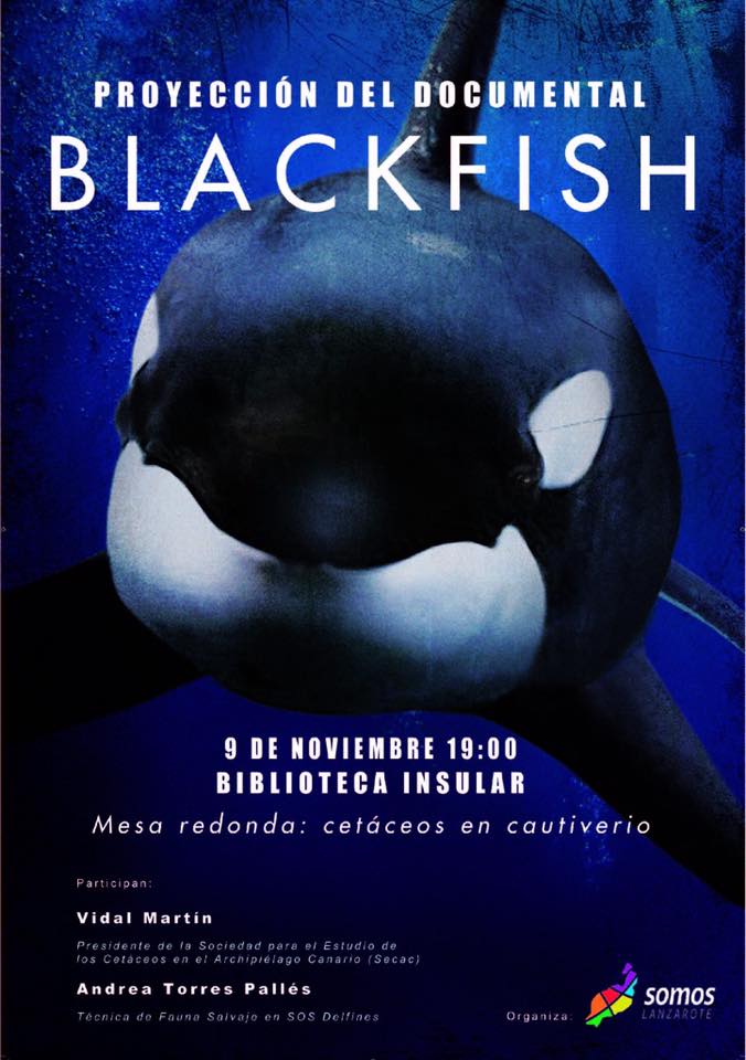 Proyectará este jueves el documental BLACKFISH con una posterior  mesa redonda con expertos, tendrá lugar a las 19.00 horas en la Biblioteca Insular de Arrecife