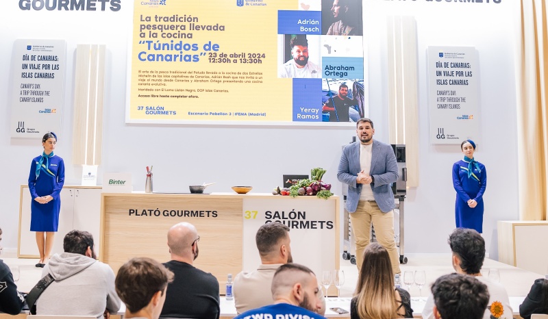 Los viajeros del vuelo en el que se trasladaron los chefs y productos que se mostrarán en la feria fueron sorprendidos con una degustación de bollo gomero