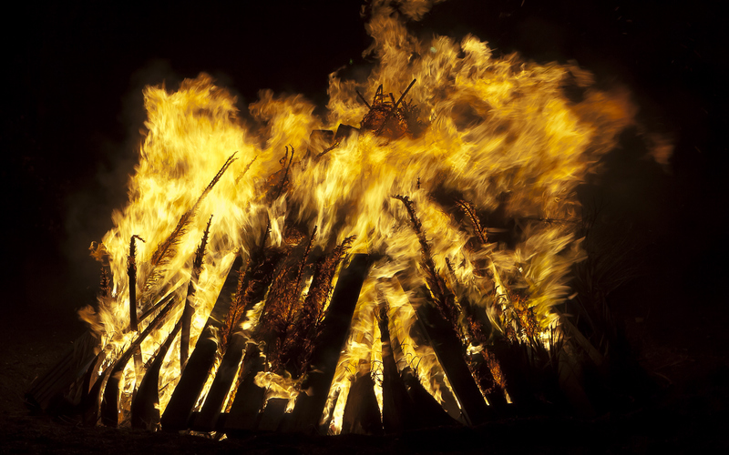 Numerosas montañas de palés se levantan en diferentes puntos de la isla para celebrar la noche más corta del año