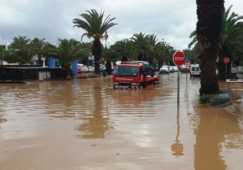 La mayoría de los servicios fueron por la tromba de agua caída en Costa Teguise el sábado