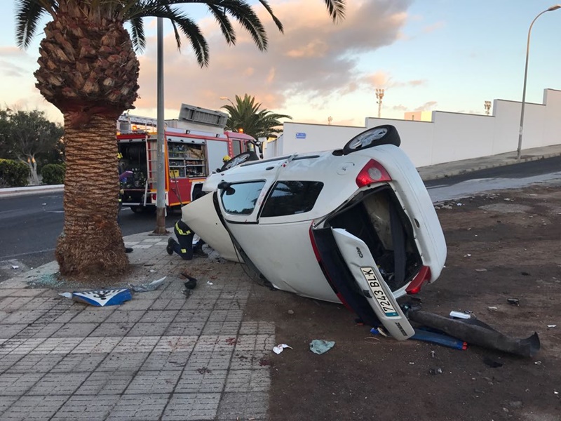 Tres heridos, uno grave, en una colisión con vuelco en Tiagua