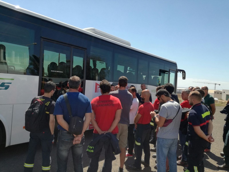El curso lo realizaron una treintena de bomberos de Lanzarote, Gran Canaria y Fuerteventura econ guaguas, remolques y camiones