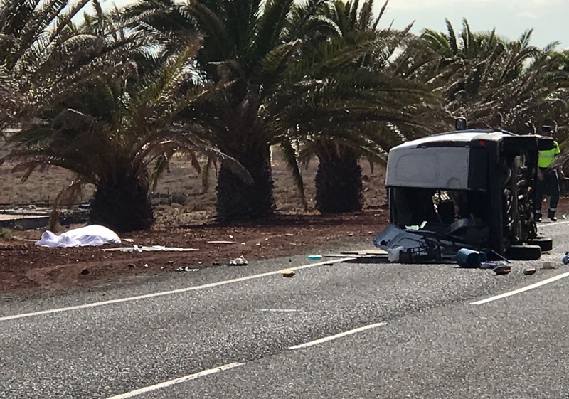 Tres heridos, uno grave, en una colisión con vuelco en Tiagua