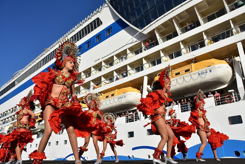 Pasajeros y tripulación de AIDAblu disfrutaron del espectáculo de Los Yaiseros.