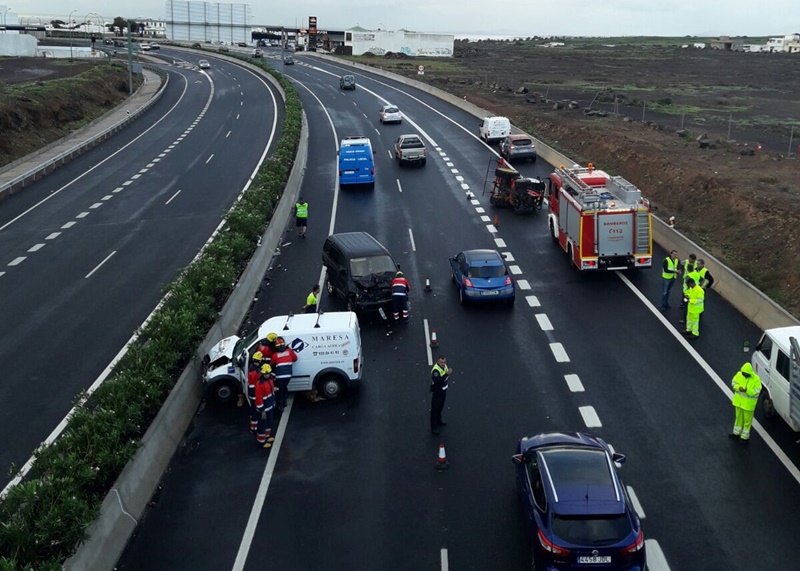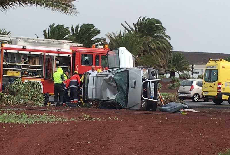 Un hombre de 73 años, herido tras volcar con su coche en la LZ-2, cerca del aeropuerto.