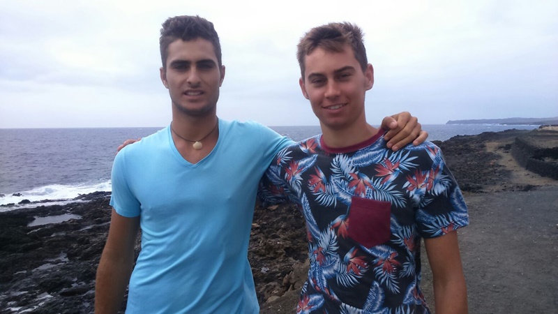 Los jóvenes Óscar Reyes y Joan Lluc lograron rescatar a tres de los seis turistas que naufragaron este miércoles en la costa conejera.