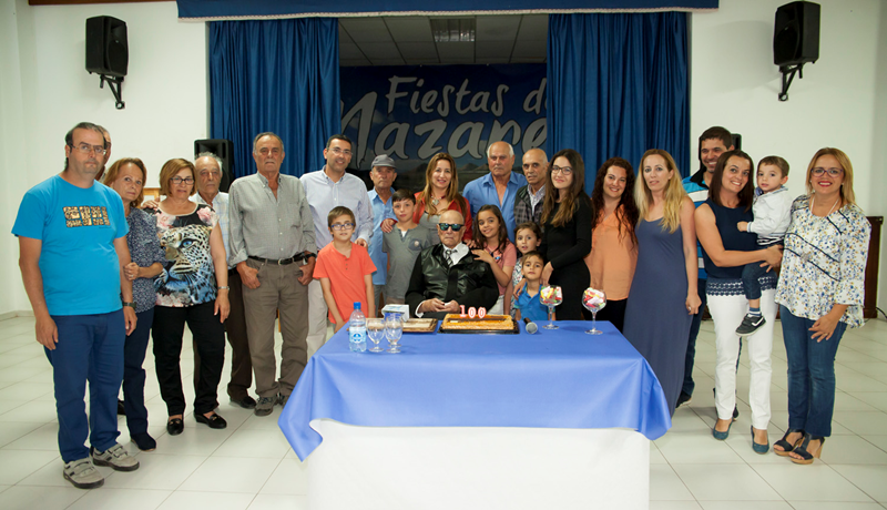 El alcalde de Teguise, Oswaldo Betancort, y la directiva del CSC Nazaret, le hicieron entrega de un regalo durante un encuentro muy especial con sus familiares