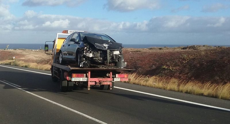 Tres heridos, uno grave, en una colisión con vuelco en Tiagua