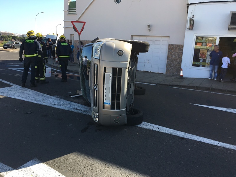 El accidente ha tenido lugar en calle Carlos V, donde el coche quedó volcado en la calzada tras chocar con otro vehículo