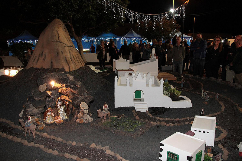 El alcalde Pancho Hernández y el párroco de Tías, Agustín Lasso, fueron los encargados de encender el nacimiento que recrea todos los pueblos del municipio