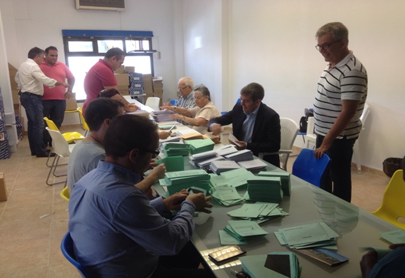 El candidato de CC a la Presidencia del Gobierno de Canarias compartió jornada de trabajo con compañeros de partido y simpatizantes, a los que ayudó a ensobrar las papeletas