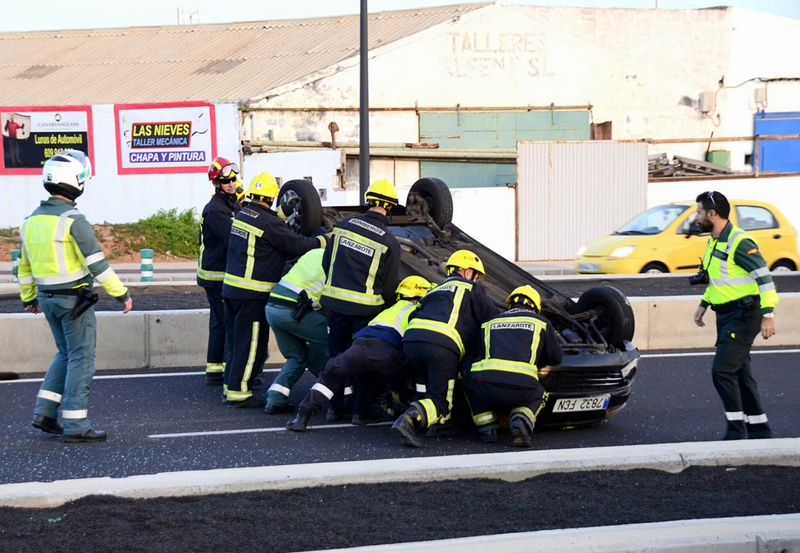 Tres heridos, uno grave, en una colisión con vuelco en Tiagua