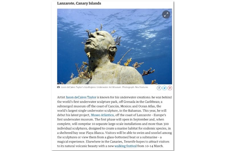 Según el diario británico, “los visitantes podrán vivir una experiencia mágica nadando y buceando entre las más de 300 obras” que contempla instalar Jason deCaires Taylor en los fondos de Playa Blanca. /Vea el reportaje