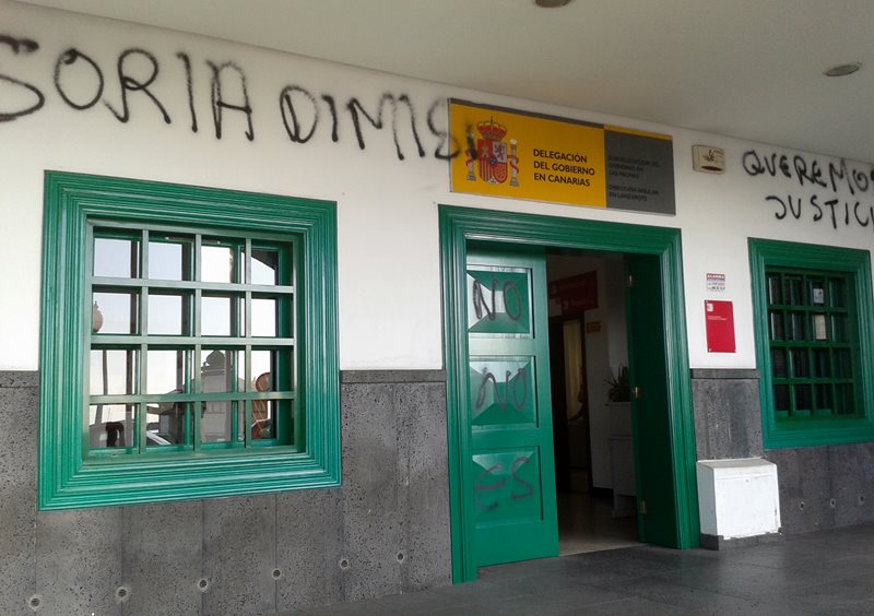 “Soria dimisión” y “Queremos justicia" son algunas de las frases que se pueden leer en este nuevo acto vandálico
