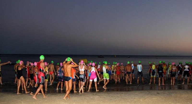 El centenar de deportistas que tomaron la salida tenía que cubrir 400 metros a nado, 4.500 metros de carrera y otros 400 en el mar hasta alcanzar la meta.