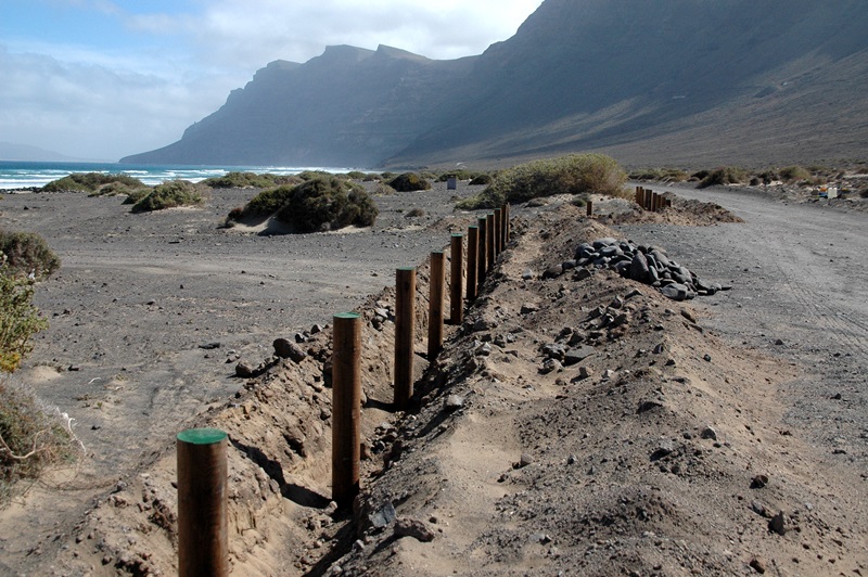 Operarios instalan desde este martes pivotes en el margen de la carretera más próximo a la playa en la zona del Rincón