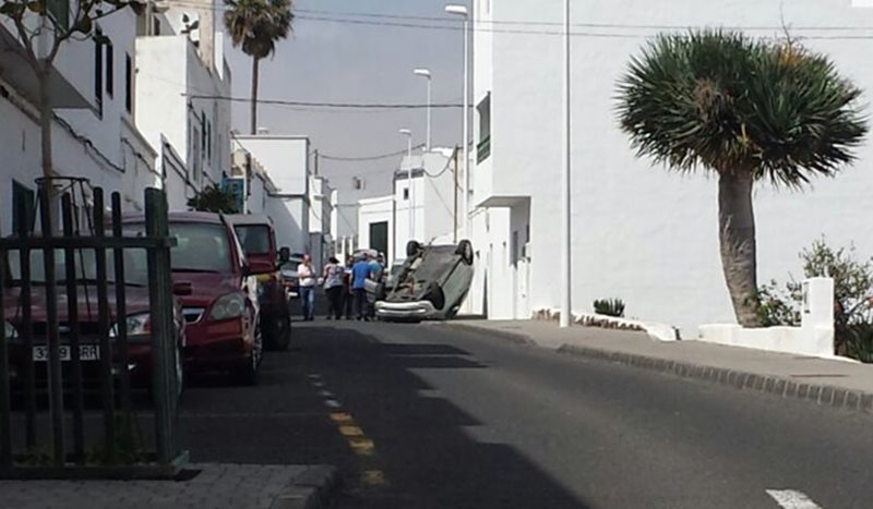 Tres heridos, uno grave, en una colisión con vuelco en Tiagua